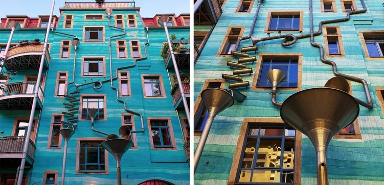 We’re sure the above the picture looks like a painting to you! Well, at first look, we thought so too. But it’s actually a real building in Germany- a colourful drainage system in the ‘Neustadt Kunsthof Passage’ in Germany. And what’s completely blowing our minds is the fact that how the entire wall, full of pipes & funnels, turns into a charming musical instrument every time it rains! Isn’t that just the most beautiful way to celebrate nature?