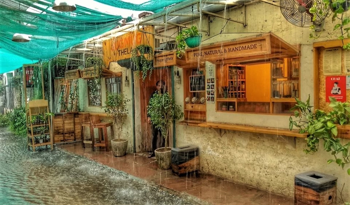 This Italian restaurant, located opposite Gargi college, is the perfect place to hang out on a rainy day. It spans over two floors, and the décor has been done up with plants, lights, and bright pots. We suggest you try to get a seat outside in the balcony to make the most of the beautiful weather. Dig into their wide selection of pastas, pizzas and salads, or call for one of their delicious desserts. After all, who can say no to something sweet on a rainy day?