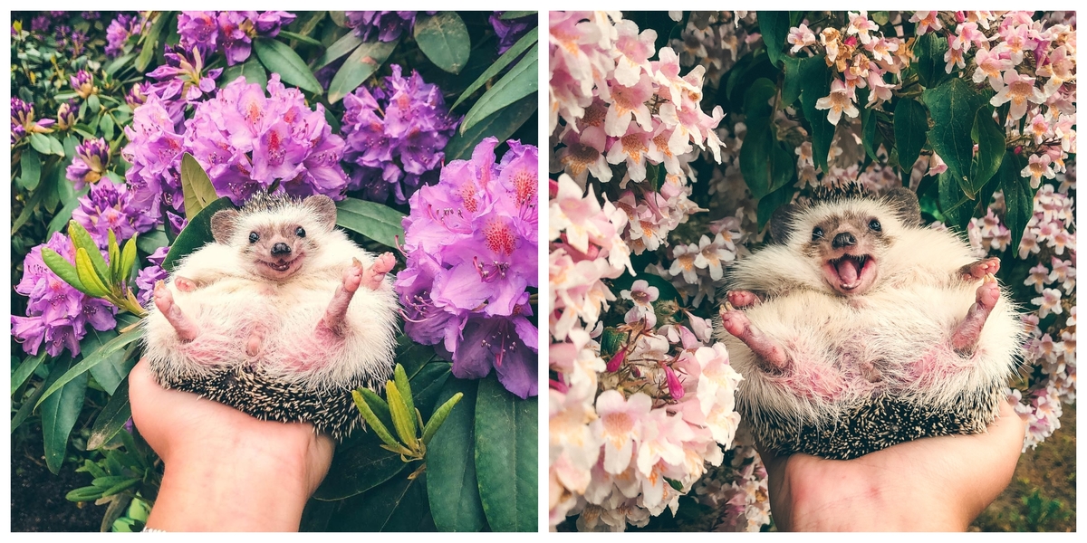In most of the pictures, the hedgehog appears to be laughing as he reclines on his prickly back with his tiny, pink paws outstretched. It’s just the cutest sight, trust us! Sometimes in blue stripy socks and other times in a pair of heart-shaped glasses, Pokee’s cuteness will melt your heart! In fact, he even has a mini teddy bear to snuggle!